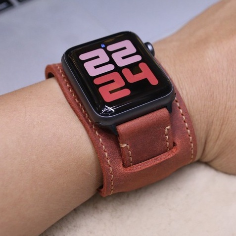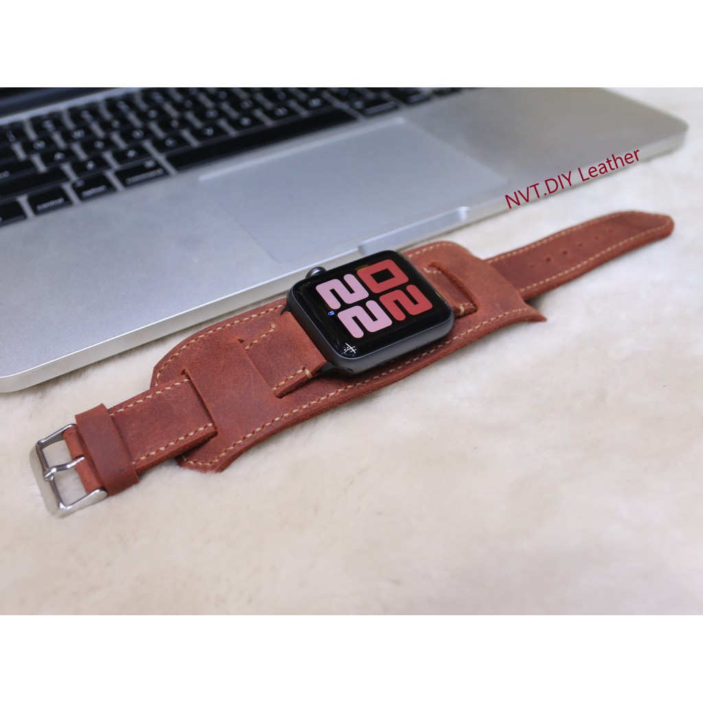 Giới thiệu Dây đeo Bundstrap thay thế Apple Watch da bò sáp Nâu đỏ handmade