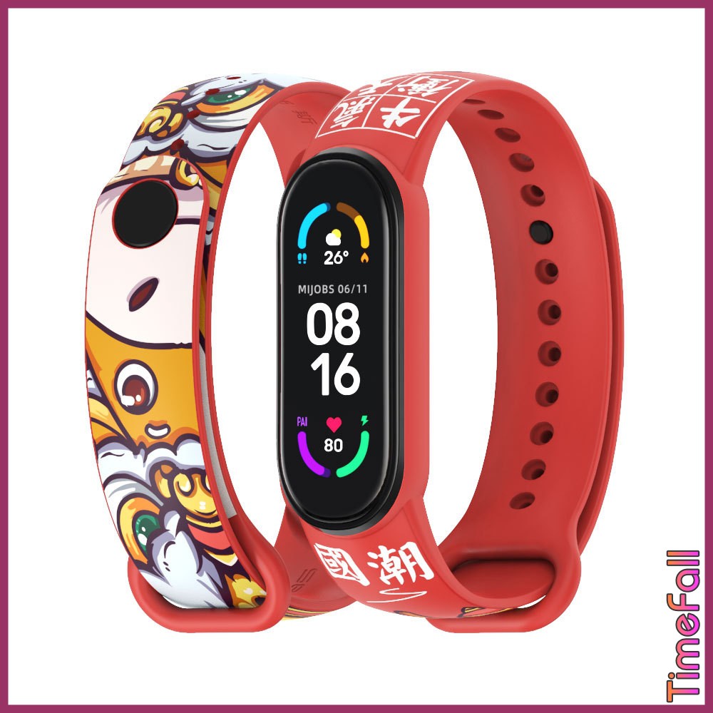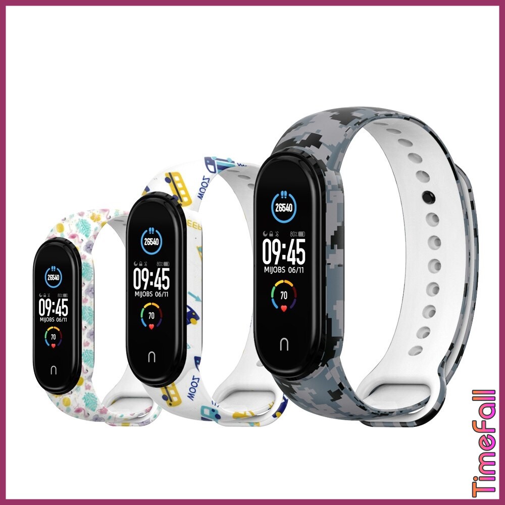 + Dây đeo cao su họa tiết mi band 6, MIBAND 5 Mijobs