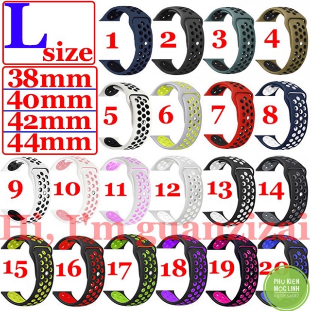 Dây Apple Watch Sport Nike là sự thay thế dành cho những người muốn thay đổi phong cách hay chỉ muốn sử dụng để phù hợp với hoạt động thể dục thể thao. Dây đeo Apple Watch Sport Nike chắc chắn sẽ là lựa chọn hoàn hảo dành cho bạn.Cực nhiều màu đẹp cho đủ size 38/40, 42/44