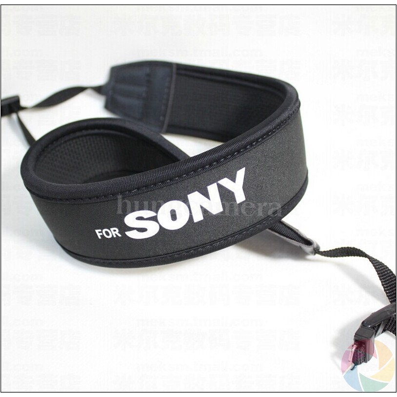 Dây đeo chống mỏi cho máy ảnh Sony nền Đen, chữ Trắng