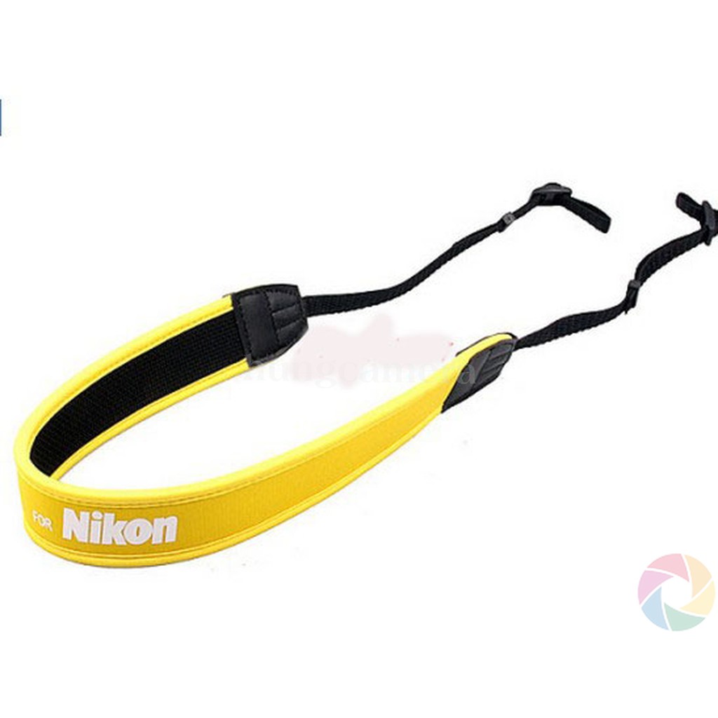 Dây đeo chống mỏi cho máy ảnh Nikon nền Vàng, chữ Trắng