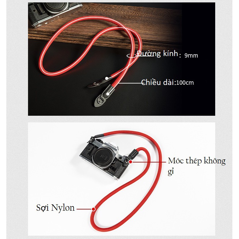 Dây đeo máy ảnh Shetu.(đeo cổ)._ Dây được làm từ sợi Nylon kết hợp với da, chăc chắn bền