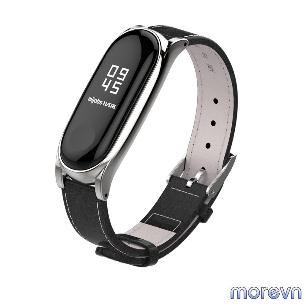 Dây đeo da bò viền cong PLUS Mi band 4, mi band 3 chính hãng Mijobs - dây đeo thay thế miband 4, miband 3 da bò PLUS