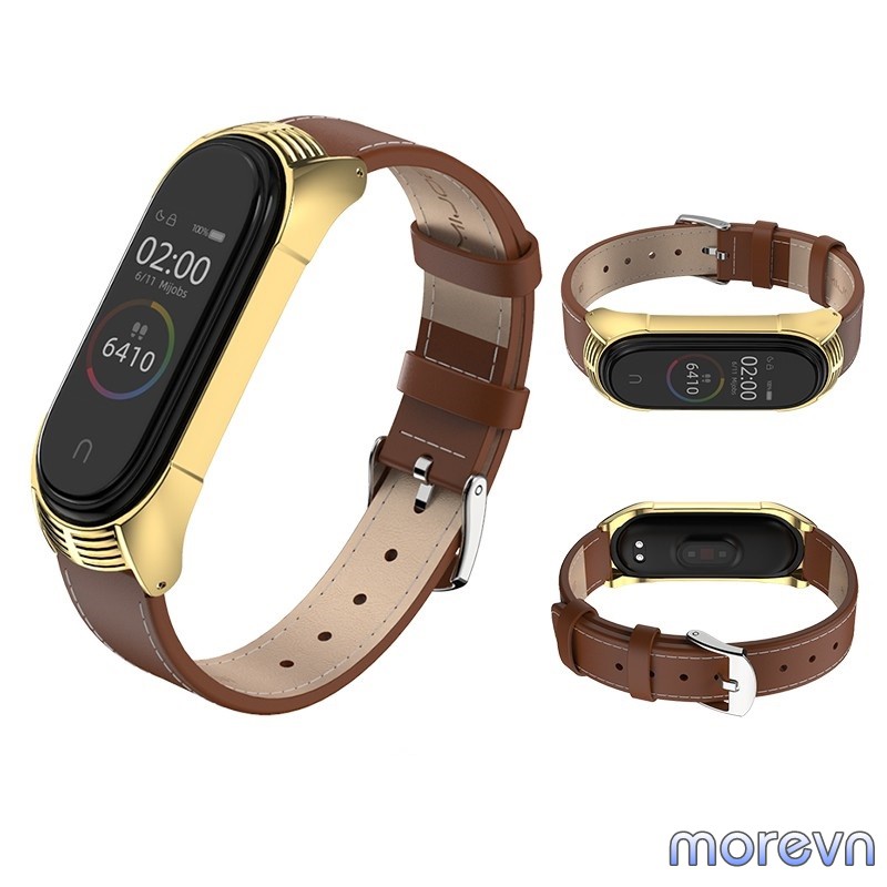 + Dây đeo da bò viền vân thay thế chất lượng cao cho Xiaomi Miband 4, 3