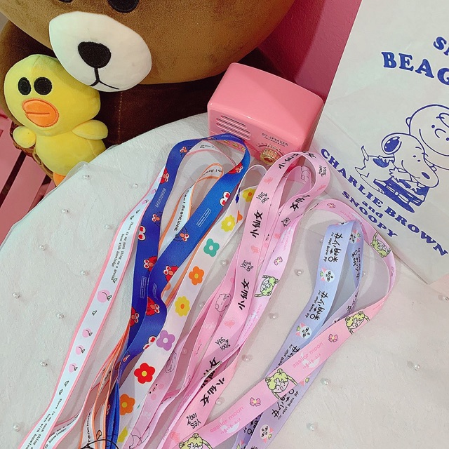 Dây đeo đa năng 3 in 1 in họa tiết dễ thương 2 đầu móc thẻ và điện thoại