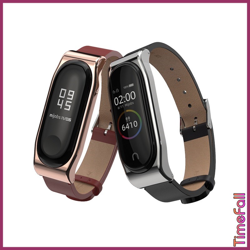 Dây đeo da PU CLASSIC mi band 6, Miband 5 chính hãng MIJOBS, dây đeo thay thế mi band 5, miband 6 da PU mặt kim loại