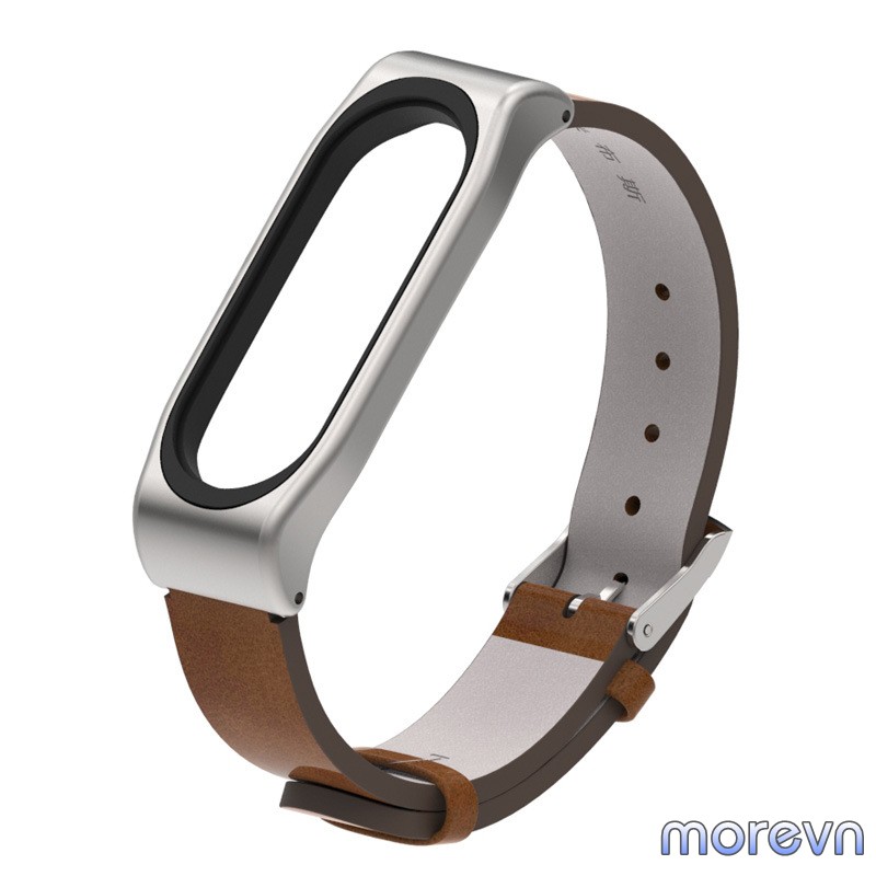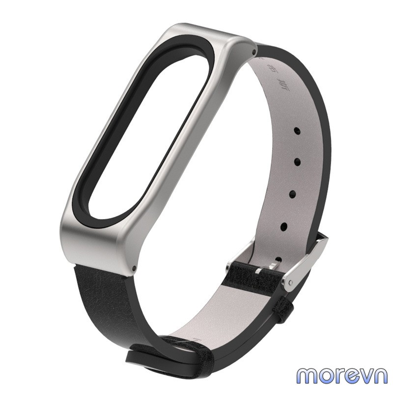 Dây đeo da PU Mi band 4, mi band 3 chính hãng Mijobs - dây đeo thay thế miband 4, miband 3 da PU mặt kim loại (Mijobs)