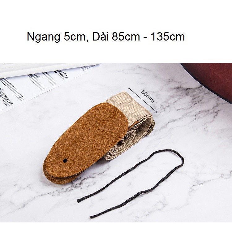 - Sản phẩm có thiết kế ngang 5cm và dài điều chỉnh được từ khoảng 85cm tới 135cm phù hợp với mọi người chơi guitar.- Gia công bằng vải dù sợi, khóa bằng kim loại không sợ gãy rất bền.