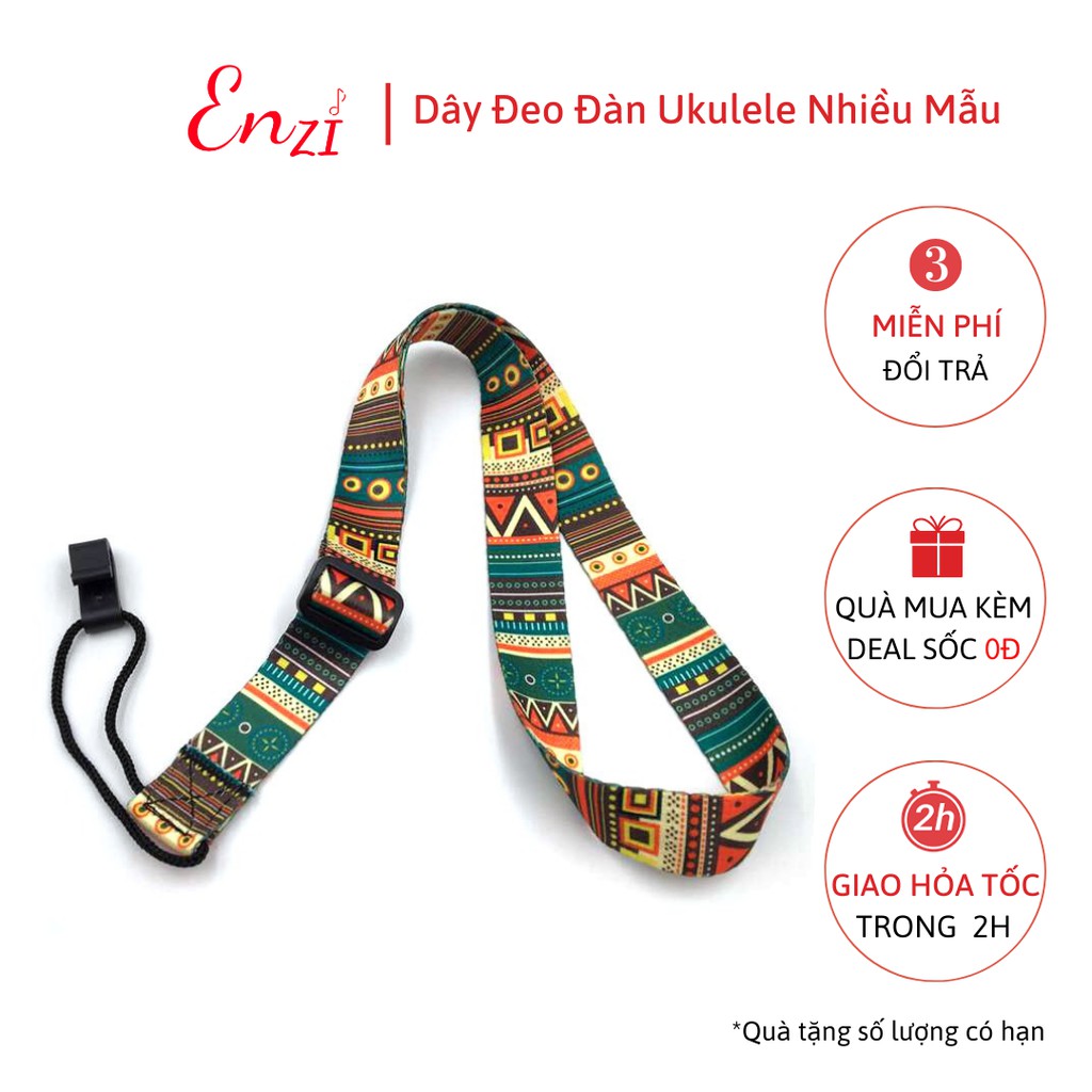 Dây đeo đàn ukulele Đen Trắng không cần đục thùng hàng loại 1 Enzi