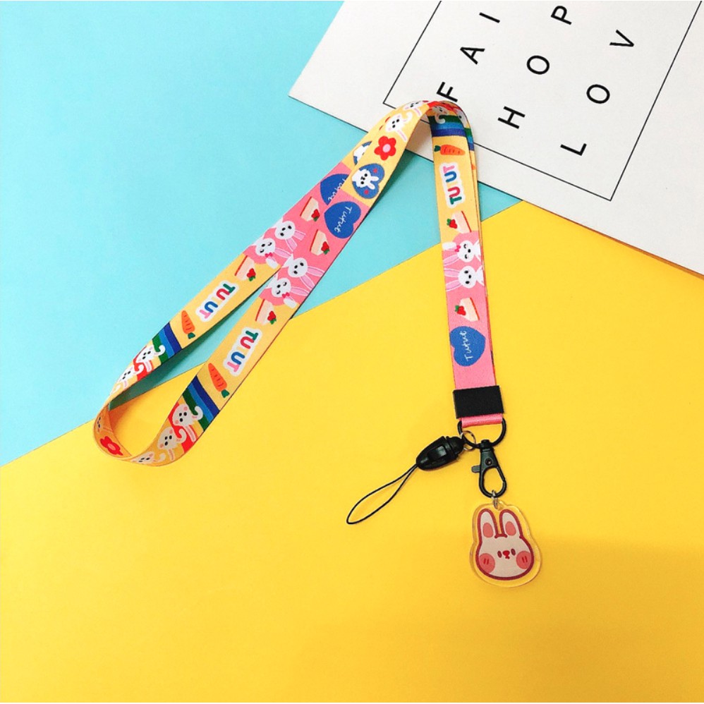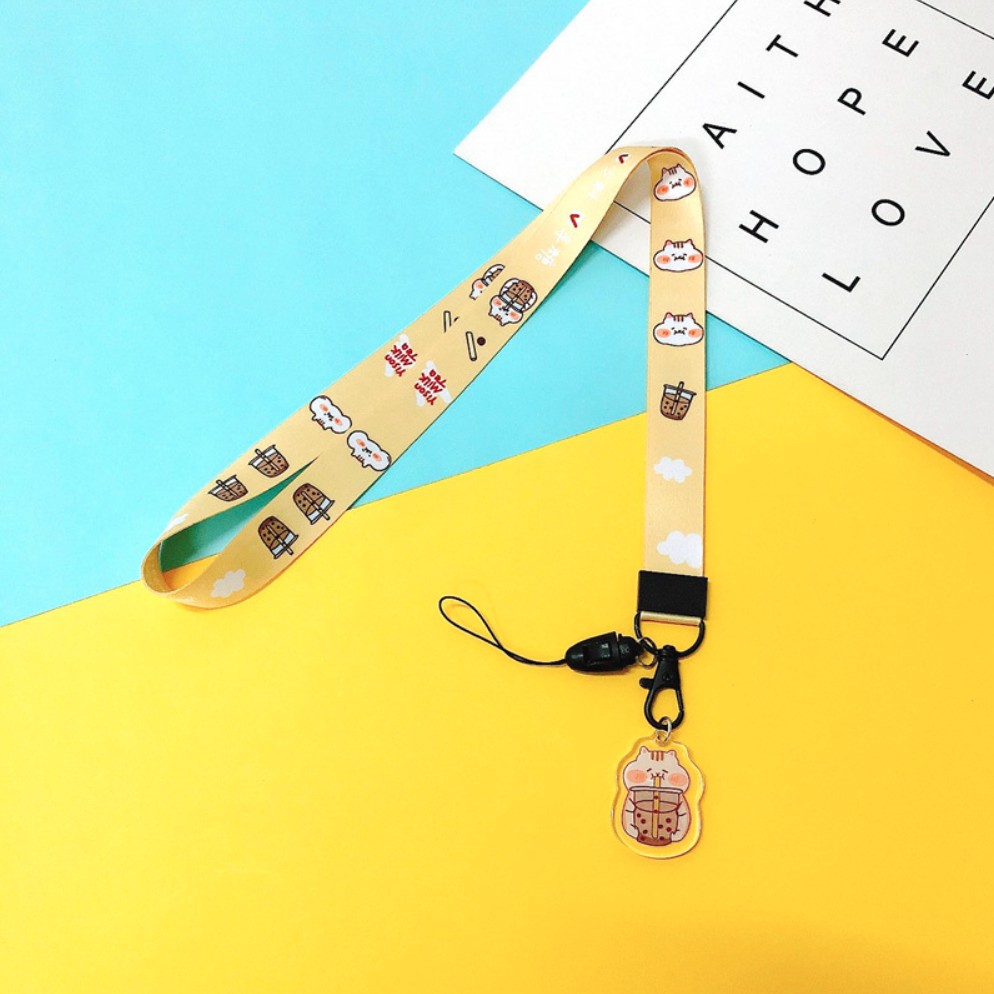 Dây đeo điện thoại, đeo thẻ Mua Tất in hình hoạt hình kèm huy hiệu (muatatshop)