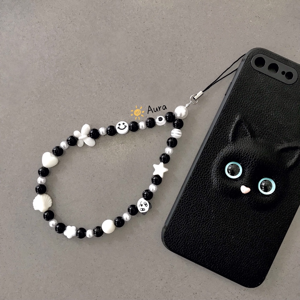 Điện Thoại & Phụ Kiện > Phụ kiện > Dây đeo điện thoại & Móc khóa || Dây đeo điện thoại Trắng đen Handmade bởi AuraCòn hàng