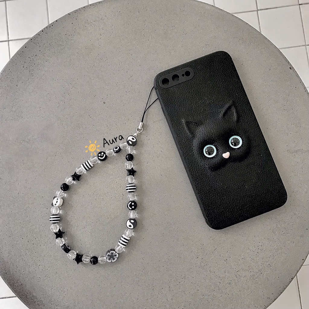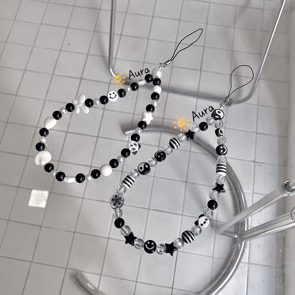 Điện Thoại & Phụ Kiện > Phụ kiện > Dây đeo điện thoại & Móc khóa || Dây đeo điện thoại Trắng đen Handmade bởi AuraCòn hàng