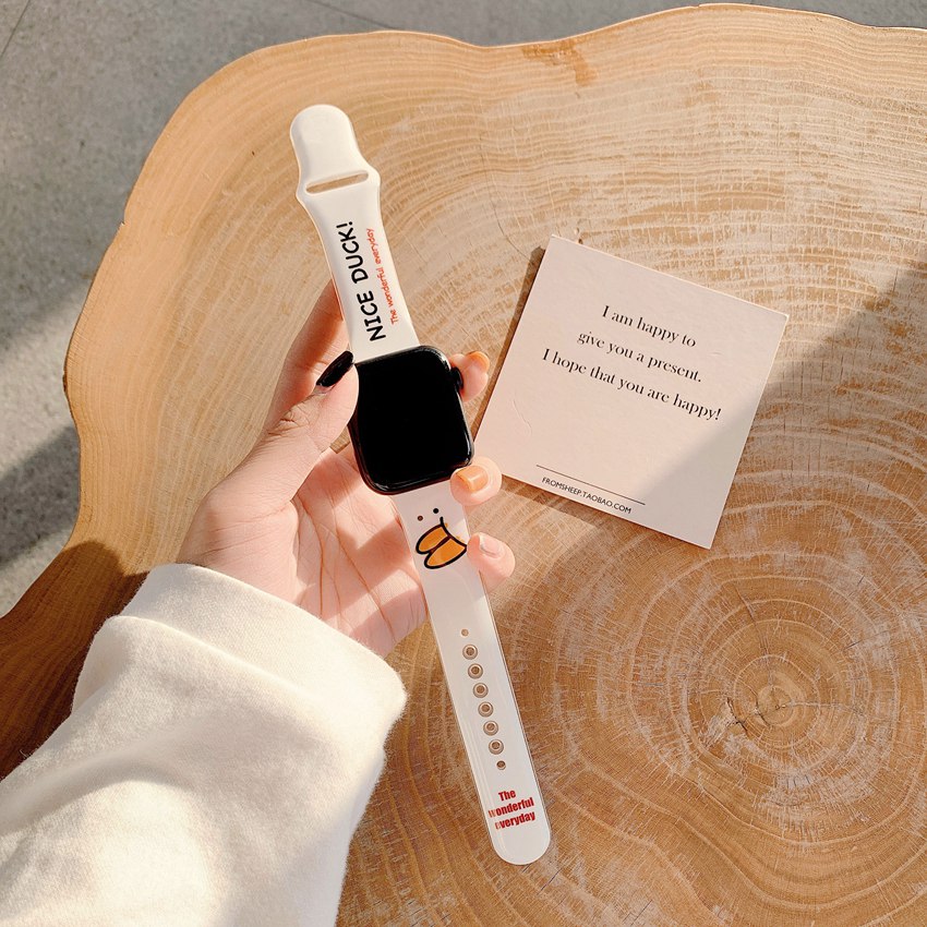 Thời gian giao hàng dự kiến cho sản phẩm này là từ 7-9 ngàyDây đeo đồng hồ 38mm 40mm 42mm 44mm bằng silicon IMD mềm trong suốt in hình mỏ vịt hoạt hình dễ thương thời trang phong cách mới cho Apple Watch Series SE 6 5 4 3 2 1 Iwatch