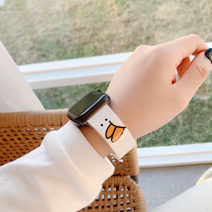 Dây Đeo Đồng Hồ 38mm 40mm 42mm 44mm Bằng Silicon Họa Tiết Hoạt Hình Đáng Yêu Cho Apple Watch Series 6 5 4 3 2 1