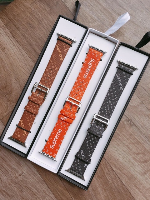 Dây đeo thời trang cho đồng hồ Apple WatchDây đeo mẫu Superme đủ size và đủ list như hình cực kỳ trẻ trung và phong cách.