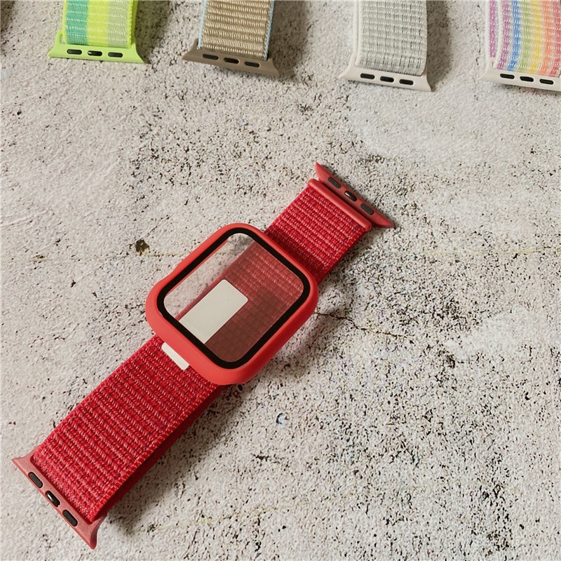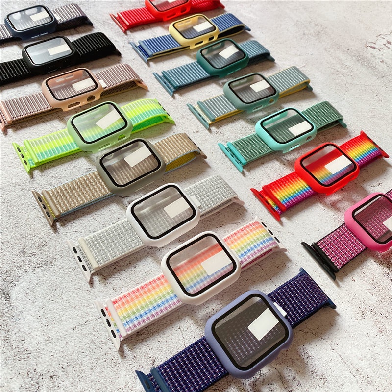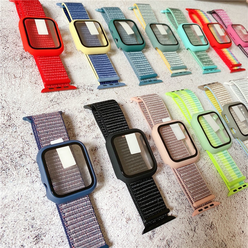 Dây đeo đồng hồ bằng nylon kèm ốp mặt kính cho Apple Watch Band 44mm 40mm 42mm 38mm iWatch serie 6 5 4 se