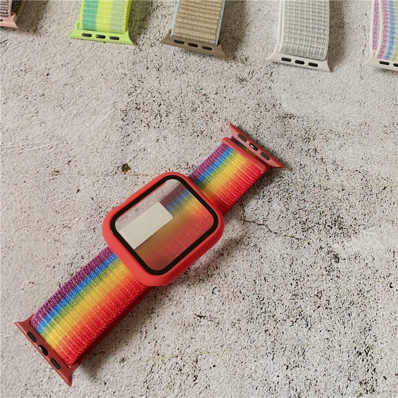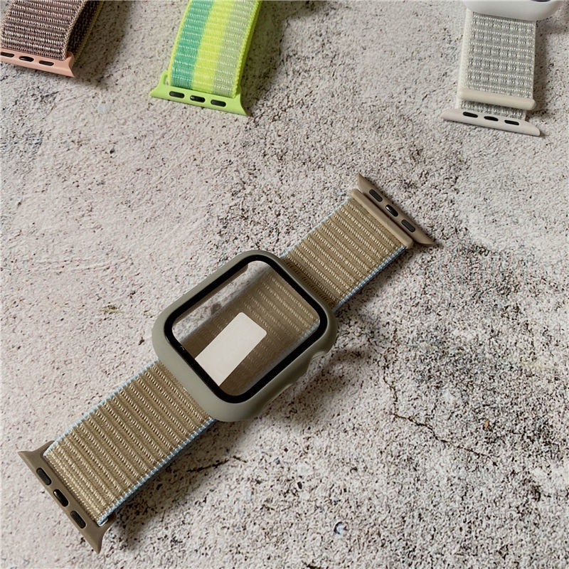 Điện Thoại & Phụ Kiện > Phụ kiện > Phụ kiện cho đồng hồ thông minh || Dây đeo đồng hồ bằng nylon kèm ốp mặt kính cho Apple Watch Band 44mm 40mm 42mm 38mm iWatch serie 6 5 4 seCòn hàng