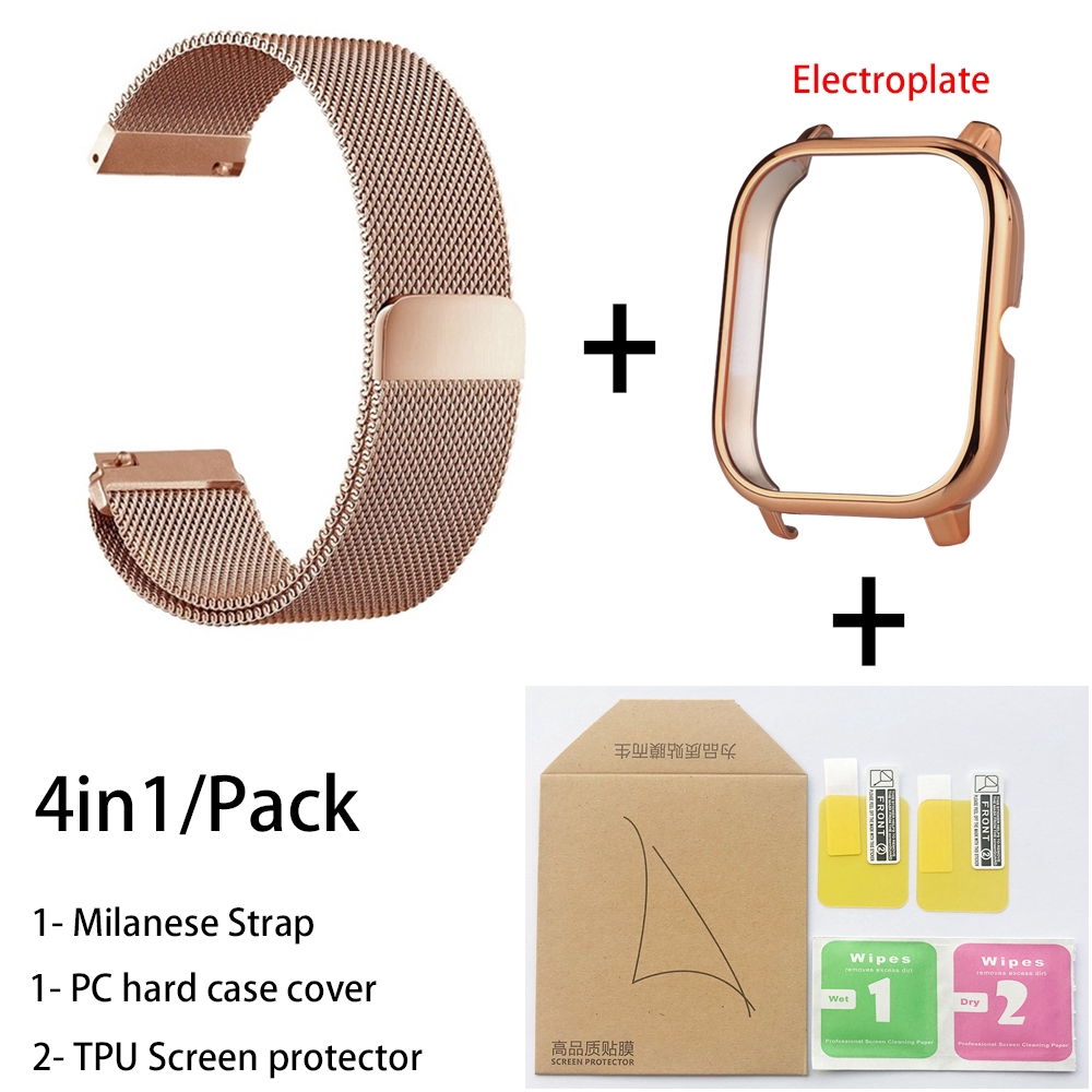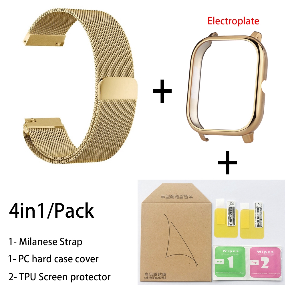 Dây Đeo Đồng Hồ Bằng Thép Không Gỉ Mạ Điện+Miếng Dán Bảo Vệ Cho for Xiaomi Huami Amazfit Gts