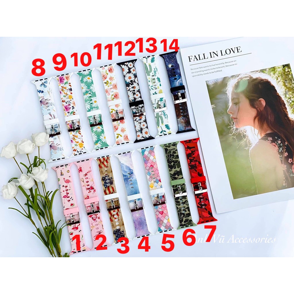 Dây đeo thời trang cho đồng hồ Đồng hồ thông minhDây đeo chất liệu cao su hoa văn đủ mẫu như hình