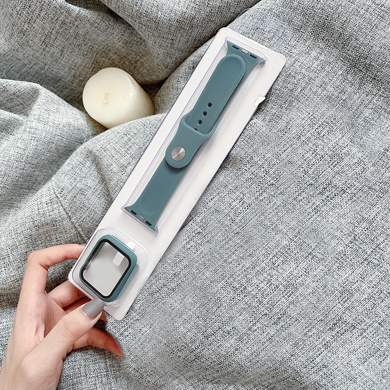 Dây đeo đồng hồ thông minh bằng silicon 2 trong 1 thời trang cho Apple Watch 6 SE 5 4 3 2 1 Size 44mm 40mm 42mm 38mm