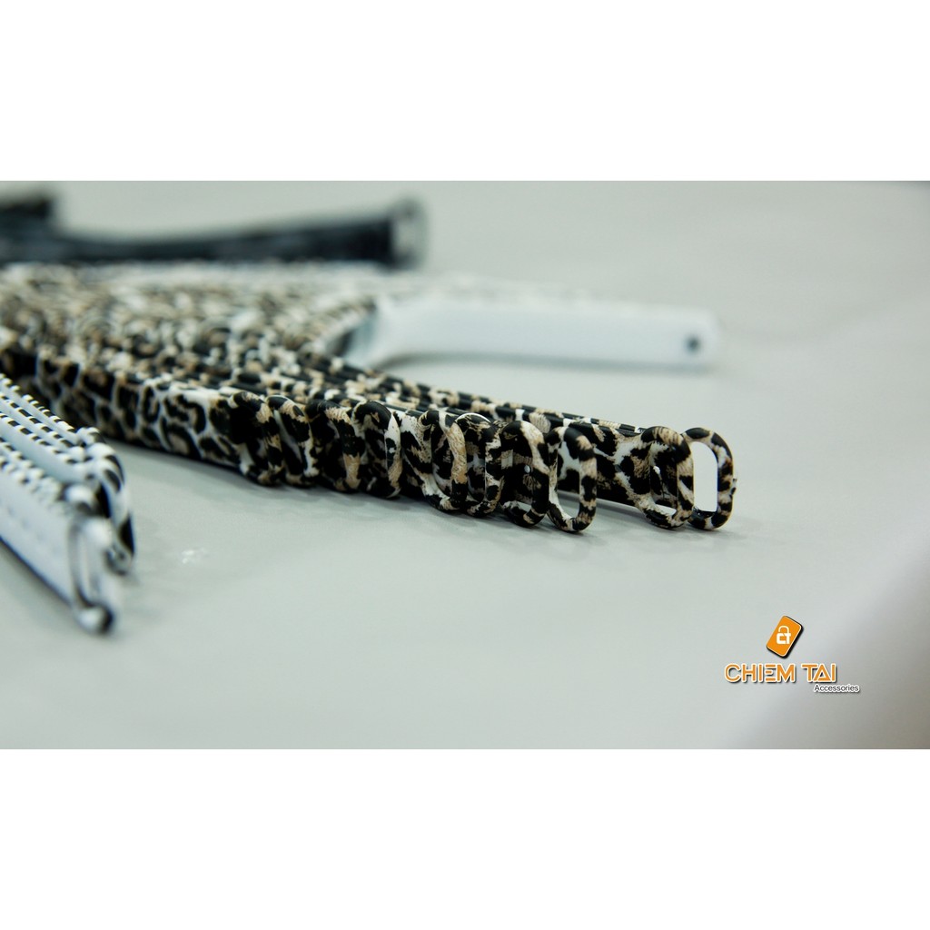 Thân dây đeo được in các họa tiết khác nhau, chúng ta có thể kể qua như họa tiết camo, họa tiết sọc vằng, họa tiết hoa lá, họa tiết da báo, họa tiết vân gỗ, họa tiết giã vãi, họa tiết đầu lâu. Chắc chắn là nó sẽ khiến cho chiếc vòng miband 2 trở nên nổi bật hơn rất nhiều so với nhưng dây đeo đơn sắc.