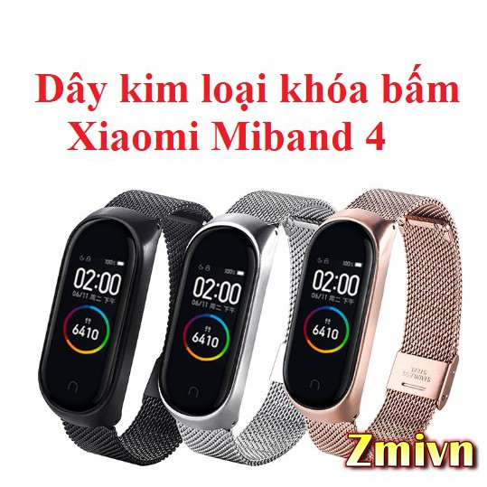Dây đeo kim loại khóa bấm Xiaomi Miband 4 Miband 3