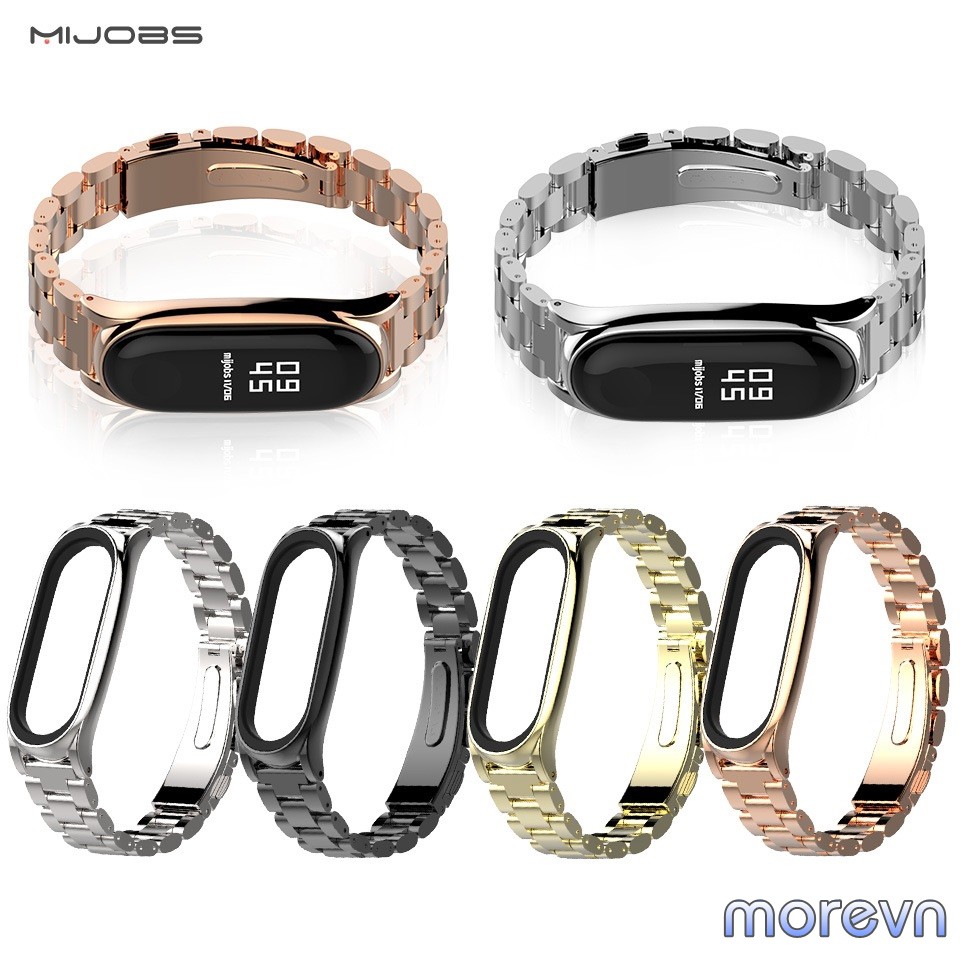+ Dây đeo kim loại mắt to PLUS Mi band 4, miband 3 chính hãng Mijobs, dây đeo kim loại thay thế miband 4, mi band 3 MIJOBS