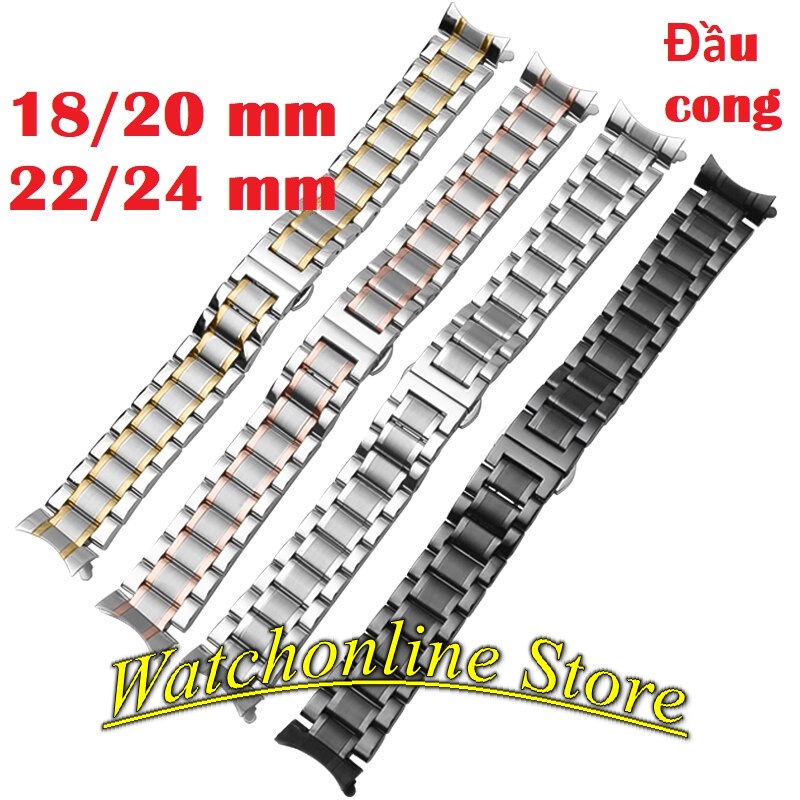 Giới thiệu Dây đeo Kim Loại Thép không gỉ Đúc đầu cong đầu ôm 18mm 20mm 22mm 24mm