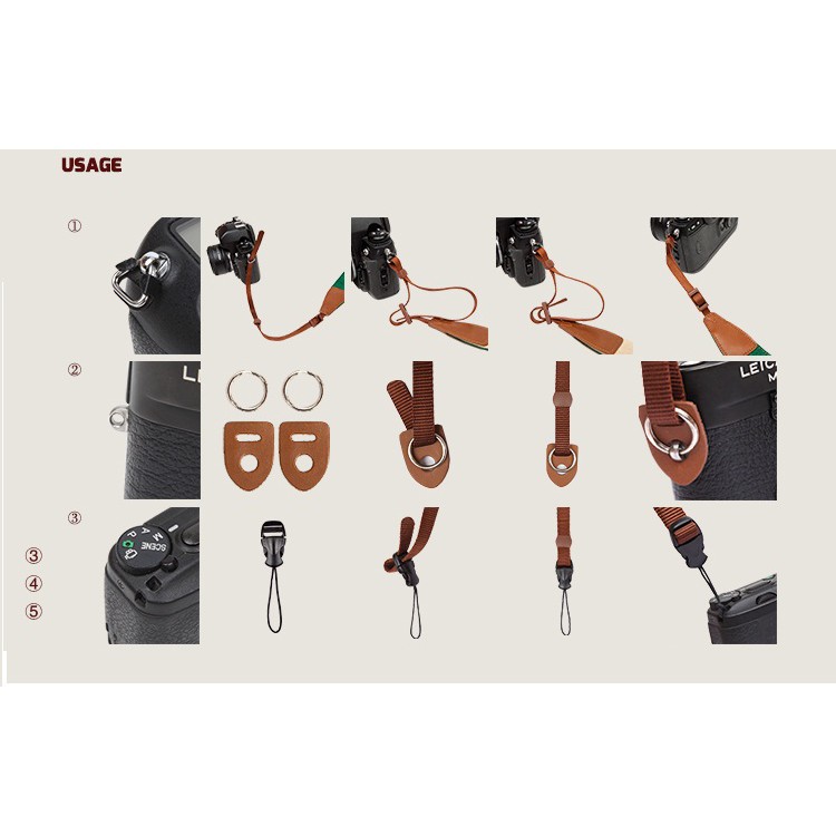 Sản phẩm giúp bạn cầm và giữ được chiếc máy ảnh, tránh trình trạng rơi tuột trong quá trình tác nghiệp. Dây đeo máy thường có độ dài được thay đổi tùy vào hoàn cảnh. Bạn có thể kéo ra để đeo ngang qua lưng, hoặc thu lại và đeo ở tay, ở cổ.