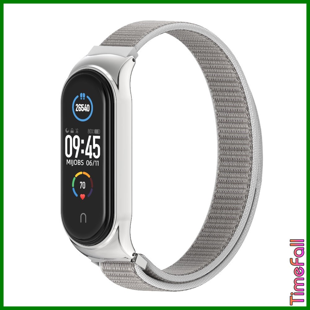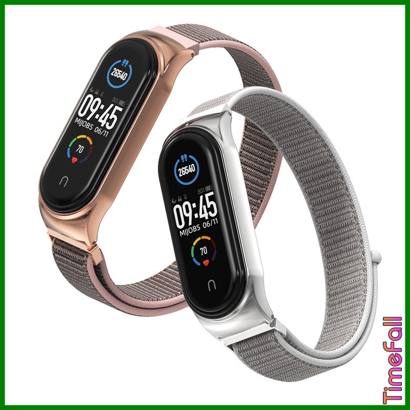 + Dây đeo Mi band 4, mi band 3 nylon mặt kim loại viền cong CS chính hãng MIJOBS