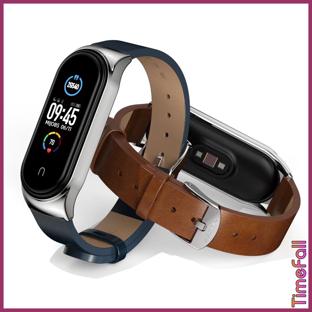 + Dây đeo mi band 6, Mi band 5 da PU viền vân TF, viền cong CS chính hãng Mijobs