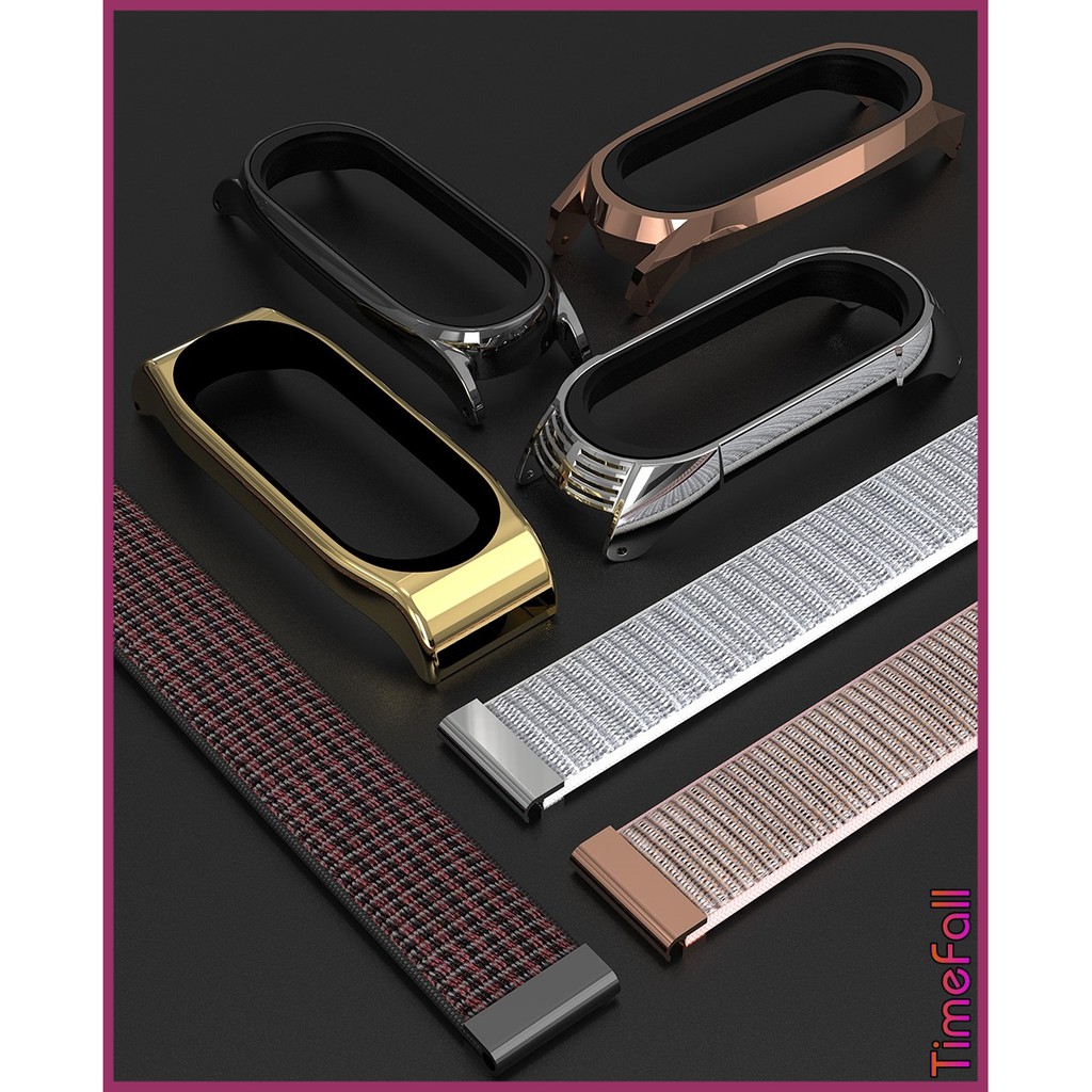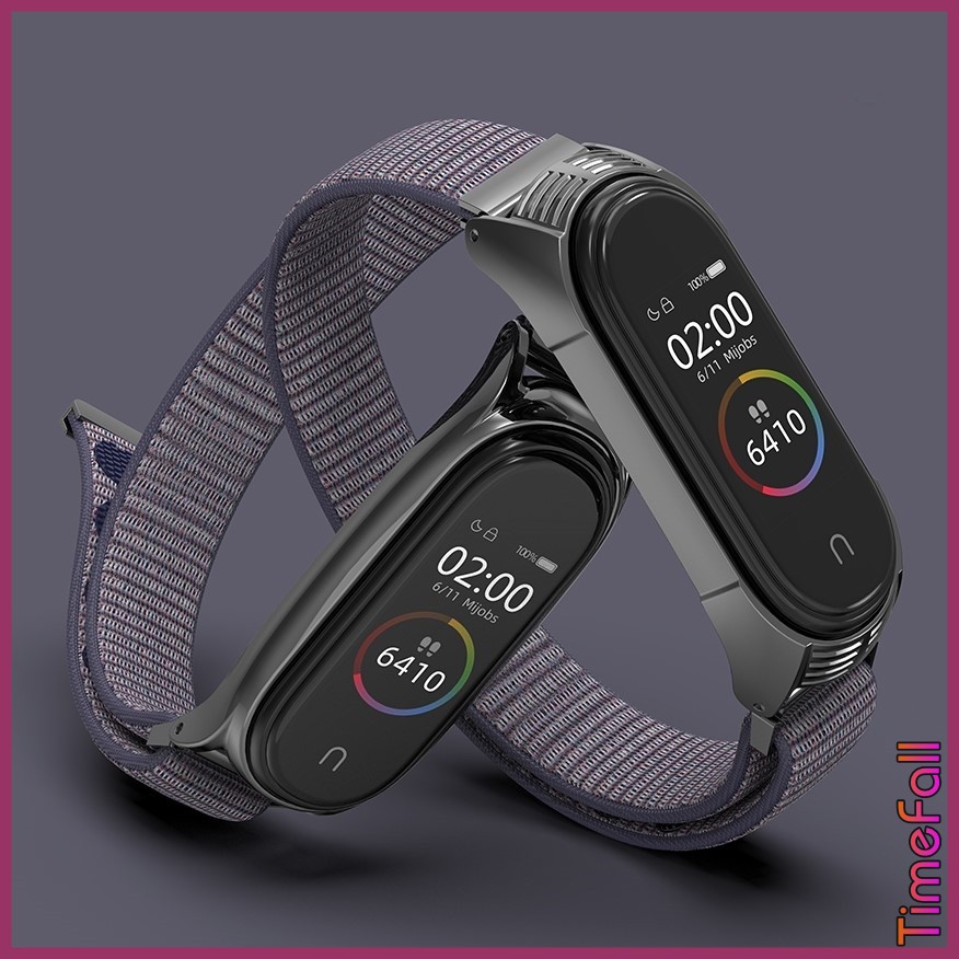 + Dây đeo mi band 6, Mi band 5 nylon mặt kim loại viền vân TF MIJOBS