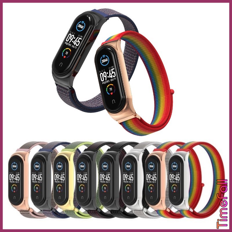 + Dây đeo mi band 6, Mi band 5 nylon mặt kim loại viền cong CS MIJOBS