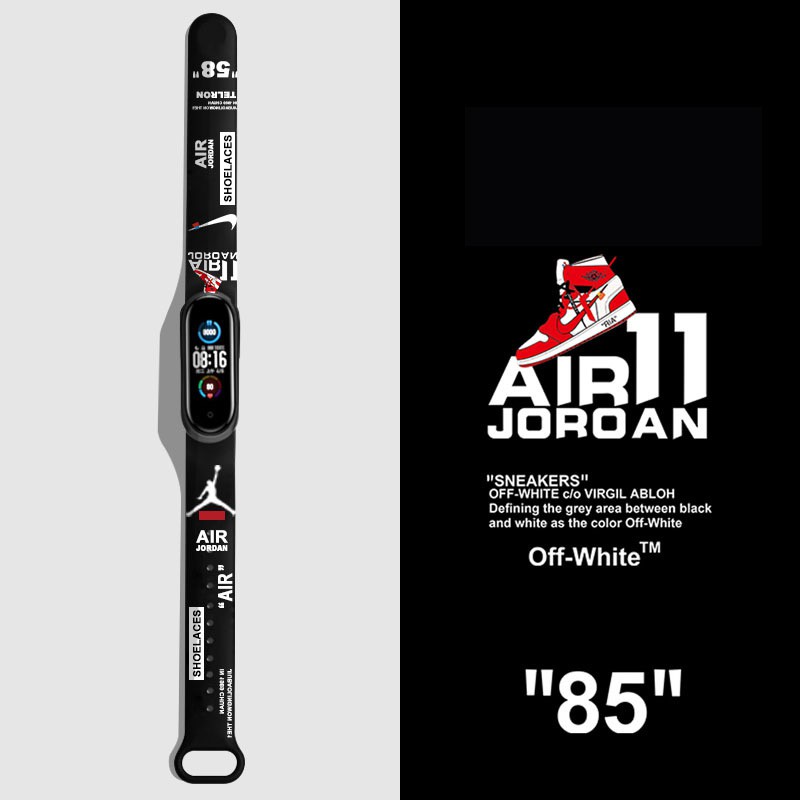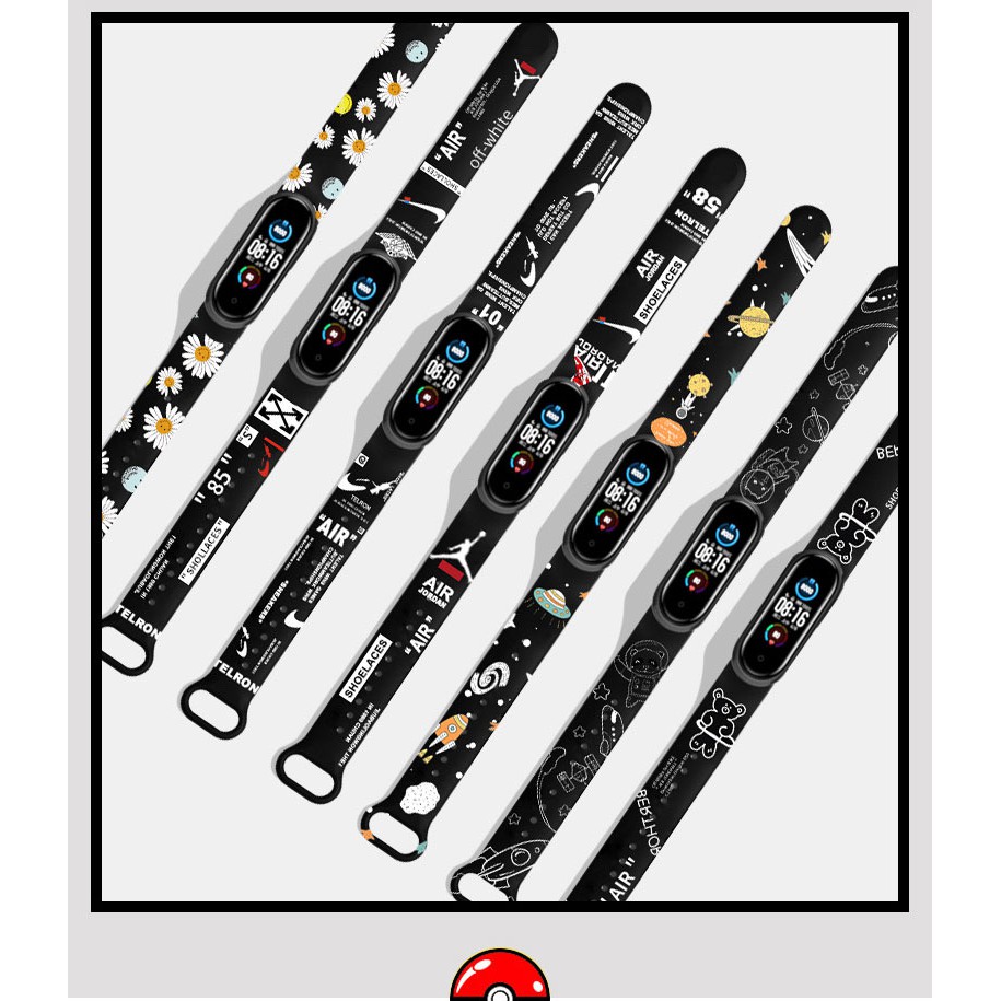 Dây có 2 màu đen và trắng kèm nhiều hình in cho các bạn lựa chọn. Sử dụng được cho vòng đeo tay xiaomi miband 6, miband 5.