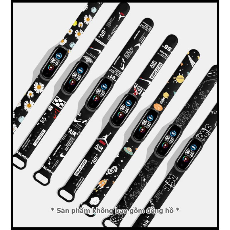 Dây đeo miband họa tiết thời trang cho Xiaomi Miband 3, Xiaomi Miband 4, Xiaomi Miband 5, Xiaomi Miband 6 (đen)
