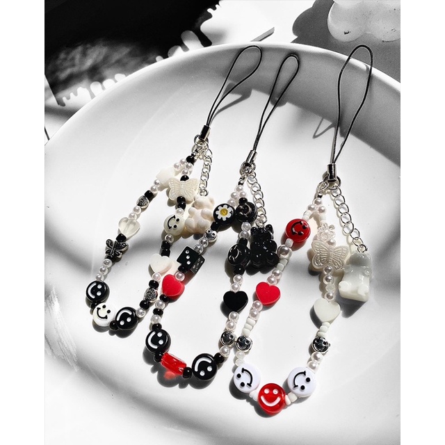 Điện Thoại & Phụ Kiện > Phụ kiện > Dây đeo điện thoại & Móc khóa || dây đeo / móc khoá hạt cườm 3 màu trắng đỏ đenCòn hàng