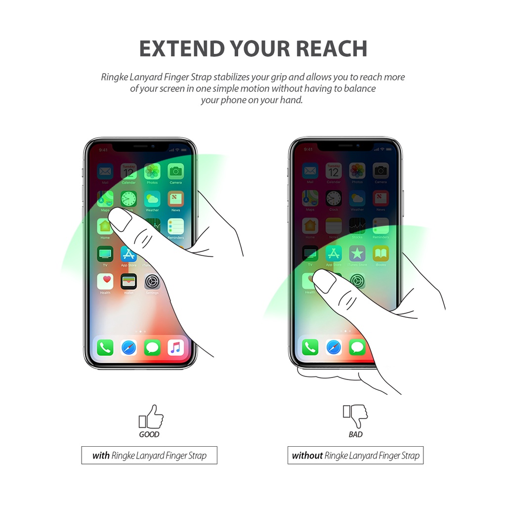 Phạm vi tiếp cận được mở rộng - Dây đeo ngón tay cho phép cầm ổn định và mở rộng phạm vi tiếp cận cho thiết bị di động của bạn.