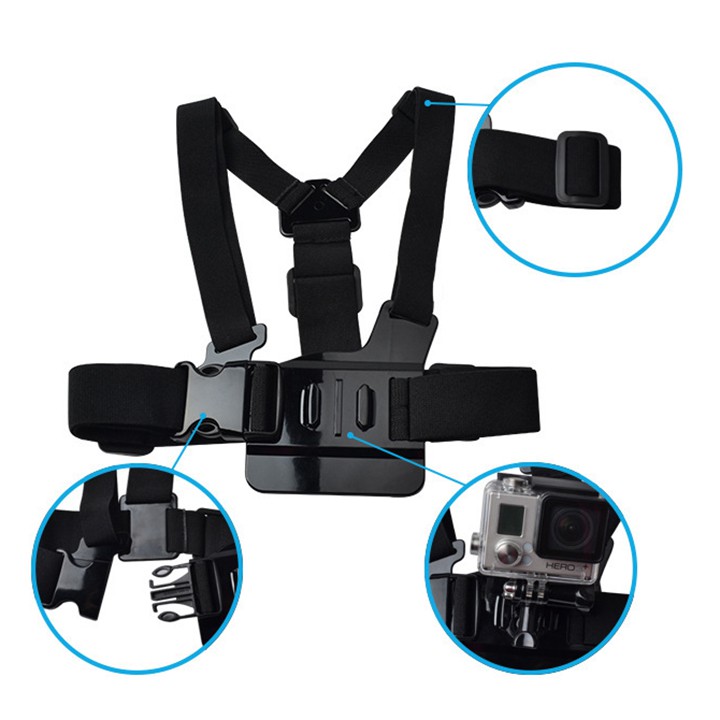 Phụ kiện dây đeo ngực cho máy quay thể thao, camera hành động. Giúp người dùng thoải mái đeo máy trên ngực trong mọi hoạt động như đi bộ, dạo phố, chạy xe, lên rừng, leo núi..Sử dụng được cho tất cả các dòng máy quay hành động GoPro, Sjcam, Yi Action, Osmo Action, Amkov, Eken .....