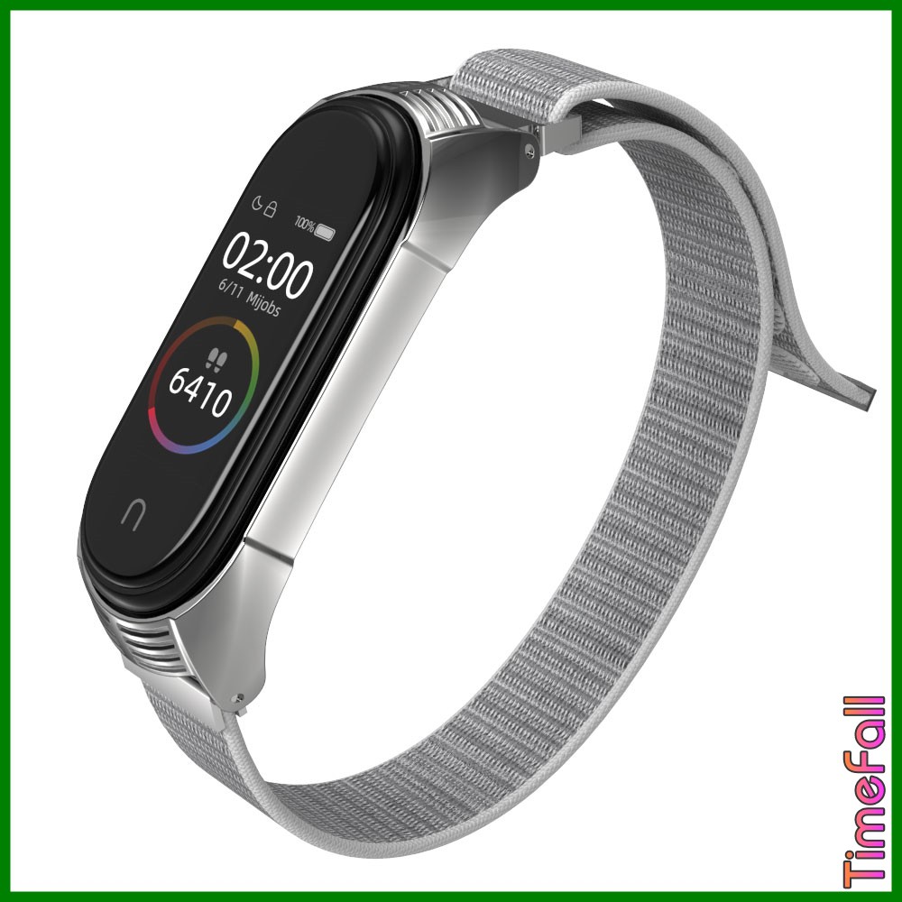 + Dây đeo nylon mặt kim loại viền VÂN TF Mi band 4, MIBAND 3 chính hãng MIJOBS