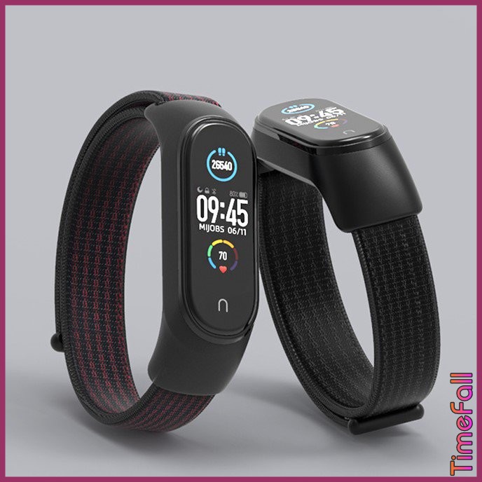 + Dây đeo nylon mặt silicon mi band 6, Mi band 5 MIJOBS