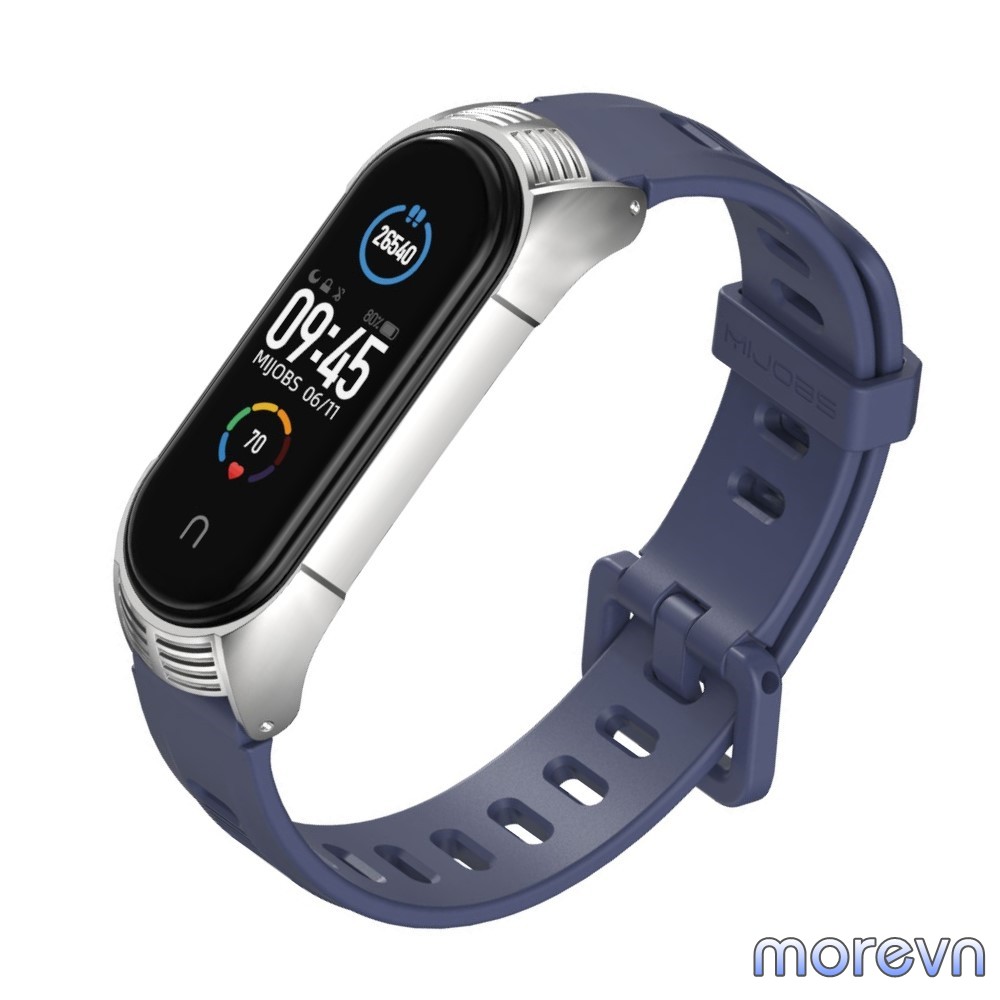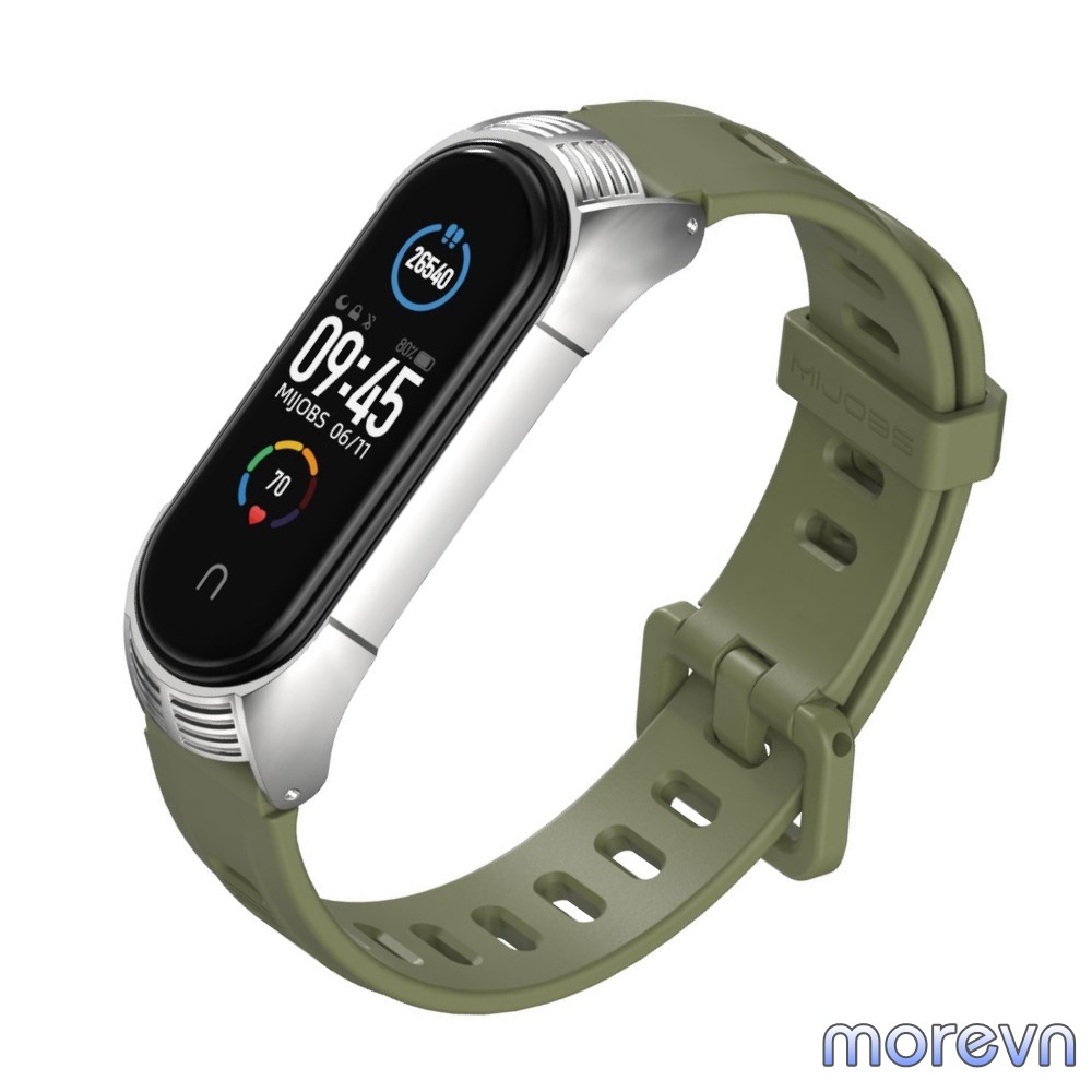 Dây đeo silicon mặt kim loại Mi band 4, mi band 3 viền vân TF chính hãng MIJOBS, dây đeo thay thế MiBand 4, 3 MIJOBS- Mô tả