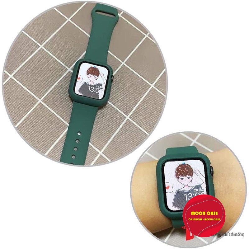 Dây đeo silicon + Ốp bảo vệ mặt đồng hồ dành cho đồng hồ Apple watch 38mm 40mm 42mm 44mm