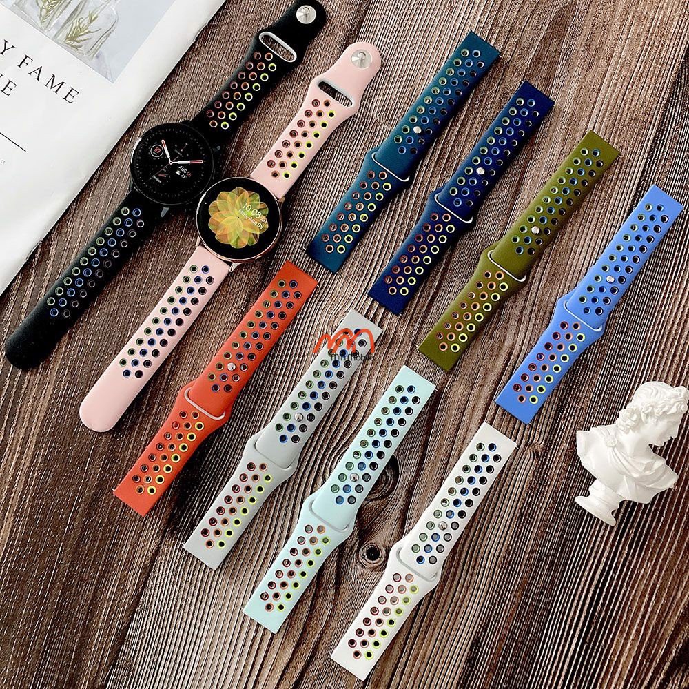 GIỚI THIỆU VỀ SẢN PHẨM DÂY ĐEO SILICON RAINBOW SAMSUNG GALAXY ACTIVE 1 / 2Dây đeo silicon Rainbow đồng hồ Samsung Galaxy Active 1 / 2 có các size 20mm và 22mm có thể gắn vừa cho hầu hết các dòng đồng hồ có mặt trên thị trường hiện nay. Như Samsung Active 1 / 2, Samsung Gear S2 , Gear S3 , Galaxy Watch , Huawei Watch 1 / 2 , Huawei Watch Pro , Huawei Watch GT / GT2 , Sony, LG Urbane , Apple Watch , Amazfit Bip, Amazfit Pace, GTS, GTR , Amazfit Stratos, Ticwatch 1 / 2 , Ticwatch S / E / C , Fitbit Versa 1 / 2 , Garmin Fenix 1/ 2/ 3/ 5 / 6, Garmin Forerunner 245 / 945 / 45 / 35 / 245 / 235 / 645 , Garmin Vivoactive 1/ 2/ 3 / 4 / 5 , Suunto , Misfit, Asus, Pebble, Polar, Fossil , Michael Kors, Xiaomi, Motorola, Puma, Armani, Honor…..