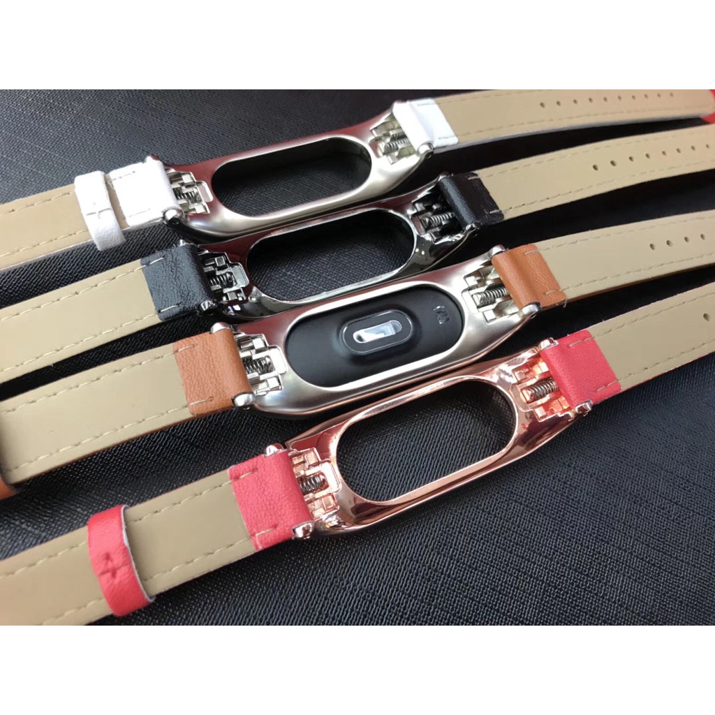 Dây đeo thay thế bằng da cho Xiaomi Miband 3.- Sảm phẩm được làm từ kim loại không gỉ, không bay màu, không lỏng lẻo khi lắp miband 3 vào.