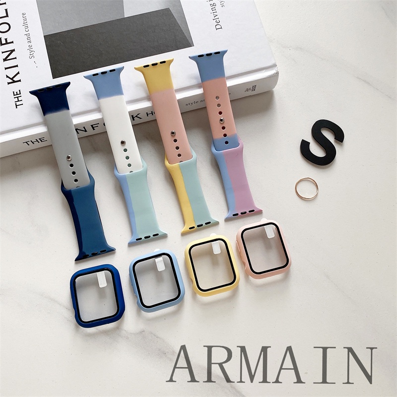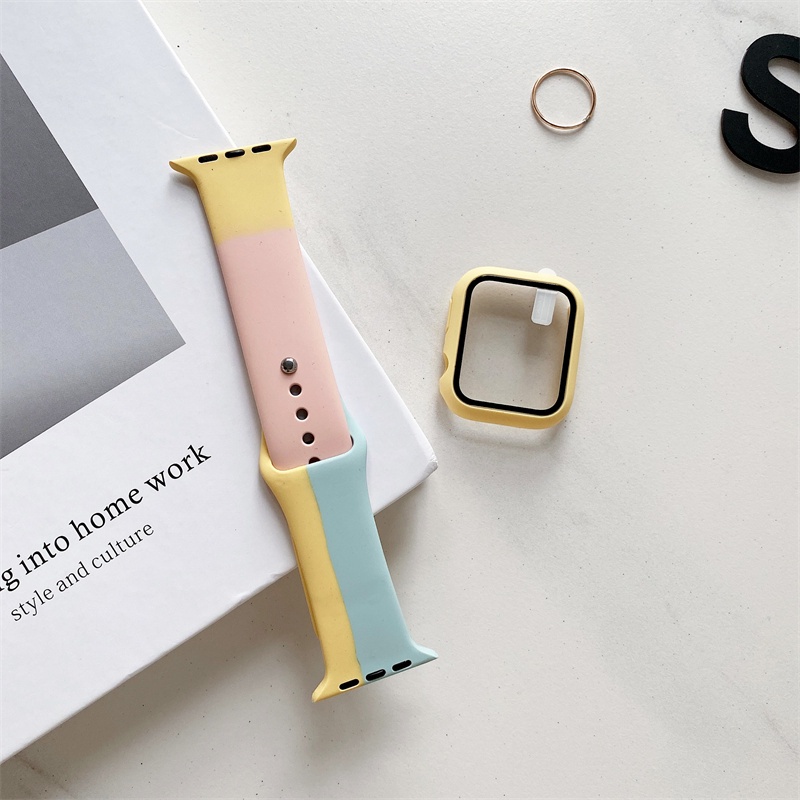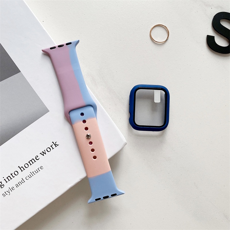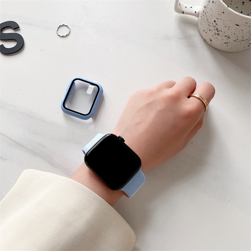 Giới thiệu Dây đeo thay thế bằng silicon+vỏ bảo vệ đồng hồ thông minh Apple Watch 44mm 40mm 42mm 38mm Series 7 6 SE 5 4 3 2 trong 1