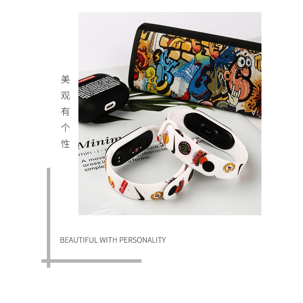 Điện Thoại & Phụ Kiện > Phụ kiện > Phụ kiện cho đồng hồ thông minh || Dây Đeo Thay Thế Bằng Silicon In Họa Tiết Thời Trang Cho for Xiaomi Mi Band 5 miband 4 3 NFCCòn hàng