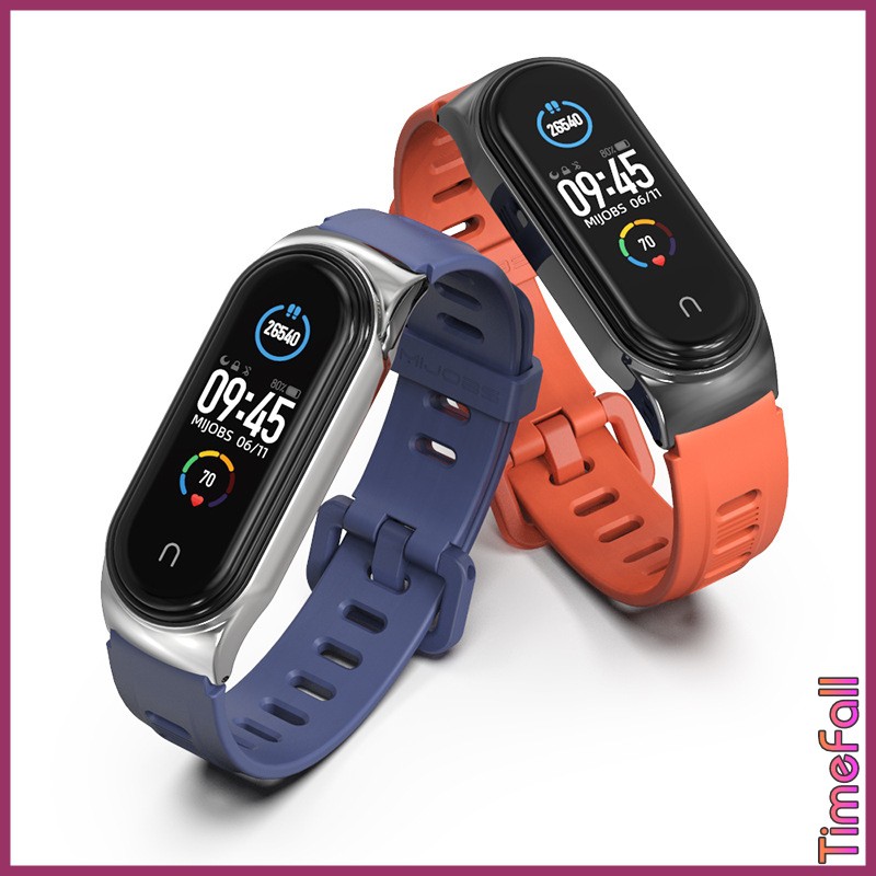 Dây đeo thay thế mi band 6, Miband 5 silicon mặt kim loại CS chính hãng MIJOBS, dây đeo mi band 5, miband 6 MIJOBS