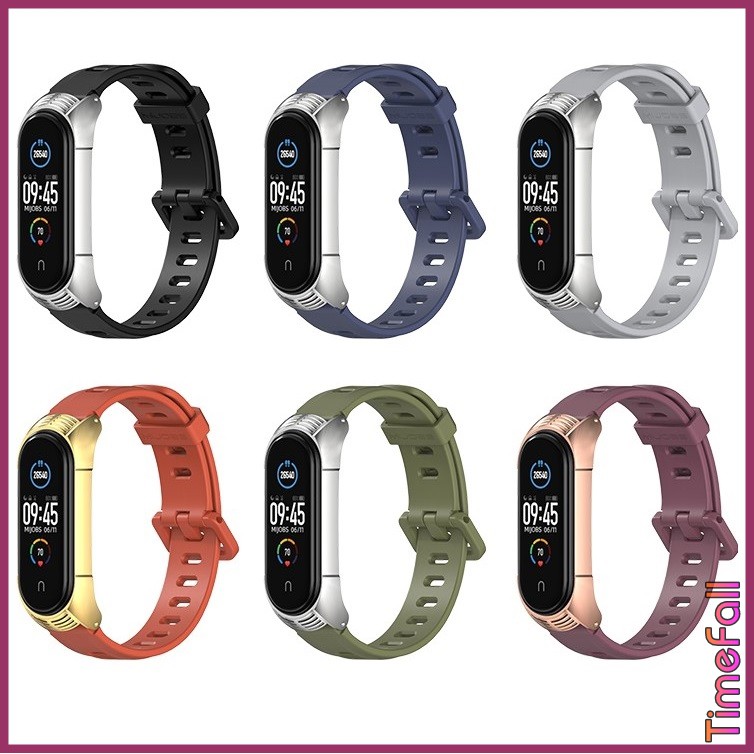 + Dây đeo thay thế mi band 6, Miband 5 silicon mặt kim loại vân TF chính hãng MIJOBS