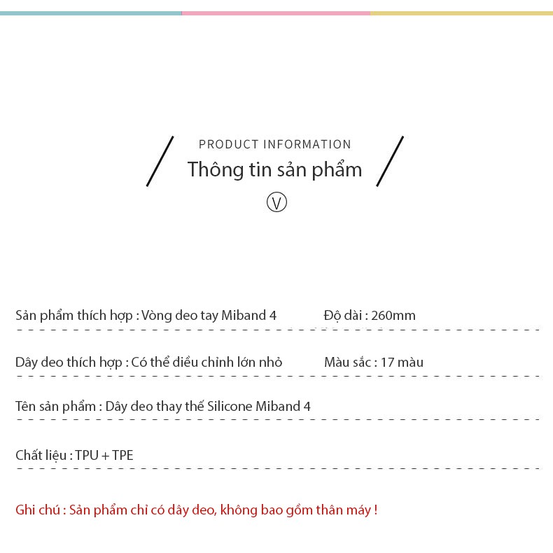 Loại sản phẩm : Dây đeo thay thế Miband 4Chất liệu : TPU + TPE