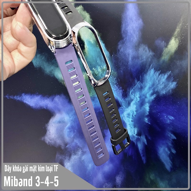 Dây đeo thay thế Xiaomi Miband 3 - 4 - 5 dây cao su khóa gài mặt kim loại TF